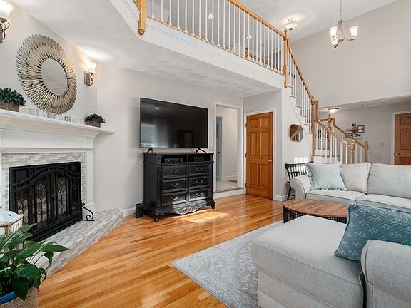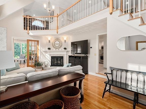 Gorgeous END UNIT tucked away at the desirable Abbot's Pond with an inviting neighborhood setting. With soaring cathedral ceilings, skylights and open areas this offers a contemporary flare and feels like a home. The grand two-story entry will welcome your guests. Living room with tiled fireplace and front to back dining room is ideal for entertaining with deck access. Updated kitchen with stainless steel appliances, quartz counters and breakfast bar. First floor primary bedroom and primary bathroom also with deck access. Additional first floor bedroom with private full bathroom access is adjacent to the laundry room. Upstairs has a large loft area with office space and custom built-ins. Third bedroom and full bathroom are nicely situated. Full basement and attic space for all of your storage needs and bonus garage parking. Large deck is ideal for summer evenings or morning coffee. Minutes to highways and the commuter rail. Enjoy the popular downtown Andover restaurants and shopping!