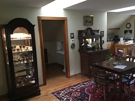 In center of Chestertown. .4 mile from hospital, WAC, and riverfront. Fully furnished studio carriage house apartment which is move in ready, including kitchen ware, towels, bed linens, etc. Located on private lane with off street parking. Features skylights, hardwood floors, washer, dryer, toaster oven, high speed internet, cable TV, refrigerator, microwave and over an acre of beautiful private gardens. Approximately 800 square feet.