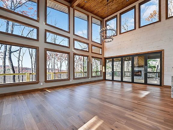 Located in the highly sought-after Aska Adventure Area, this Mountain Modern retreat offers the best of both worlds: a peaceful getaway and a high-end potential investment. Set on 1.76 acres with stunning year-round mountain views from every level, this 4-bedroom + loft, 3.5-bath home blends upscale comfort with rustic charm. Inside, an open-concept layout welcomes you with a gourmet kitchen featuring custom flooring, solid surface countertops, a large farmhouse sink, and a sleek tiled backsplash. The kitchen flows into the spacious great room, where a floor-to-ceiling stacked stone fireplace and a wall of windows bring the outdoors in. Perfect for entertaining or unwinding, the terrace level includes a wet bar/kitchenette, a second stacked stone fireplace, and direct access to one of several expansive decks. Outdoors, enjoy a large party deck with a wood-burning fireplace, plus multiple levels of covered and open-air decking to soak in the views. Custom-tiled bathrooms, hardwood flooring on the main and upper levels, and thoughtfully designed finishes throughout add to the home's appeal. Just minutes from hiking in the National Forest or launching a canoe on the Toccoa River, it's an outdoor lover's paradise. Whether you're looking for a personal mountain retreat or a short-term rental property, this home checks every box.