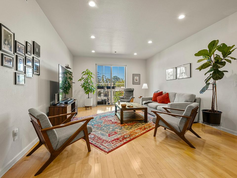 Experience the best of downtown Campbell living with top restaurants, shops, and nightlife just steps away. This stylish, 2-bedroom, 2-bath condo features a bright, open layout with hardwood floors and a large sliding glass door for natural light. The remodeled kitchen offers sleek countertops, stainless steel appliances, and ample cabinetry, flowing into a spacious living and dining area. The primary suite includes a generous closet and en-suite bath, while the second bedroom and full bath provide flexibility for guests or a home office. Everyday convenience shines with tech savvy upgrades including AI controlled in-unit laundry & keyless. The community includes a fitness center, rooftop deck with BBQ and deeded parking. Just outside your door: vibrant downtown Campbell, the Pruneyard, Los Gatos Creek Trail, and the beloved farmers market. Commuting is easy with nearby VTA, Caltrain, and quick freeway access to major Silicon Valley tech hubs. This home has it all!