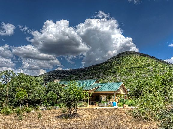 This custom-built home is nestled on 20 acres among the hills with long-distance views and frontage on the West Prong of the Frio River. The well-built home features beautifully scored and stained concrete floors, Silestone counters throughout, built-in appliances, whole home audio, oversized closets and storage spaces, and plenty of windows to take in the spectacular views and ambient natural light. Numerous outdoor points of interest include a babbling brook water feature, blooming flower gardens, native bird feeders, and pond just below the home. This home was designed to entertain as evident by the expansive patios, pergolas, and decks plus the sparkling pool and hot tub. Guests can stay in the 1 Bd/1 Ba cabin. An oversized 2-car garage with workshop completes the package. Hunting is permitted and wildlife include aoudad, turkey, axis and whitetail deer.