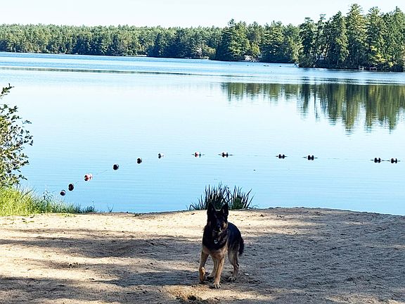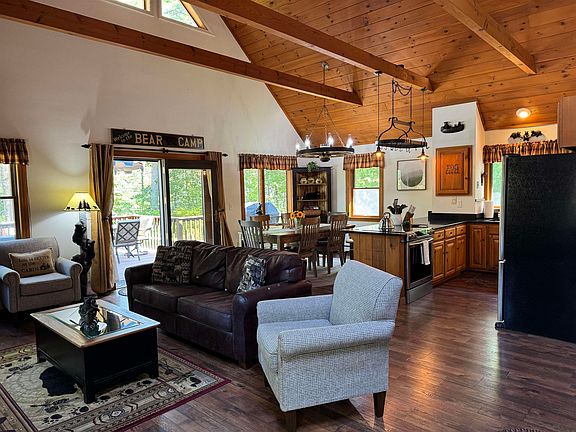 Toby tested the waters of Belleau Lake and gave the thumbs up—the lake is a perfect mirror for the brilliant fall foliage just coming alive! This year, enjoy it all from the comfort of your own home. Step inside from the wrap-around deck to a bright, open living, dining, and kitchen area. Cathedral ceilings, three skylights, and a slider to the front deck fill the space with natural light. The kitchen offers plenty of cabinet storage and granite countertops to keep the cook happy, while the open floor plan means everyone can stay connected—whether gathered at the counter or relaxing by the cozy pellet stove. Two convenient bedrooms and a 3/4 bath complete the main floor. Upstairs, the spacious loft hosts the primary suite with its own half bath. An on-demand generator ensures the whole house runs smoothly, no matter the weather. Love the outdoors? Roll down the hill and around the corner to one of the many sandy beaches. Store your toys in the oversized two-car garage and enjoy plenty of parking on the paved driveway. The landscaped front garden offers a firepit, a cozy sitting nook, and even a whimsical bear bench for relaxing evenings. Belleau Lake offers so much more—its own boat launch, a community pavilion, and a grilling area on the island perfect for summer parties. Bring your boat, cruise the lake, and soak in the beauty of New Hampshire all year long. Looking for a home you can enjoy right now? This is it!