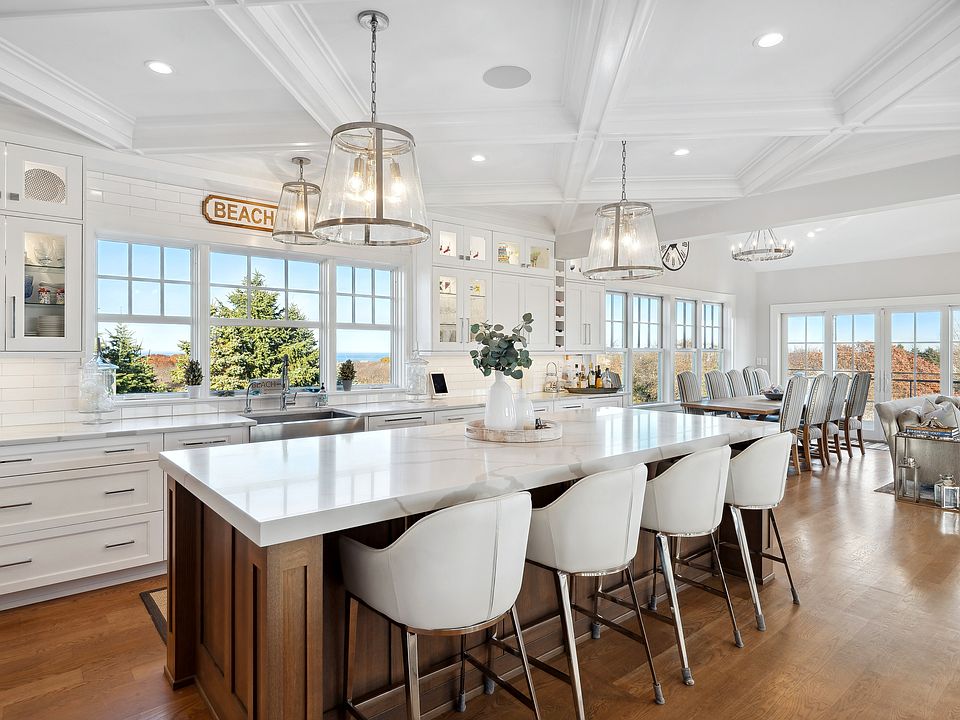 Rental Registration #: 24-1168 This gorgeous beach home is situated on one of the highest points in Montauk with amazing views of Lake Montauk and Block Island Sound, this gorgeous 5,200 square foot home offers 6 bedrooms, 5 full and 2 half baths with a beautiful heated Gunite pool situated on a half acre of land. This newly constructed home delivers attention to detail with high end design, finishes and state of the art systems. The grand staircase takes you to the chef's kitchen and open dining and living space with wonderful views. French doors open to a spacious outdoor deck for dining and lounging. The en-suite primary bedroom is on the upper level featuring a balcony off the bedroom facing west plus a large walk-in-closet, sitting area and stunning full bath with a stand alone tub. You will find an expansive lawn in the rear of the home that leads to the heated Gunite pool that features cascading water falls as well as an automatic safety cover that will maintain the heat. Additional features include an attached two car garage, fully wired smart home, high end laundry room, stunning lower level that has a open living area, wet bar, en-suite bedroom as well as a fully equipped gym. This amazing Montauk home is centrally located near beaches, dining, shopping, and marinas. Now available for Summer 2024 book your private showing today.