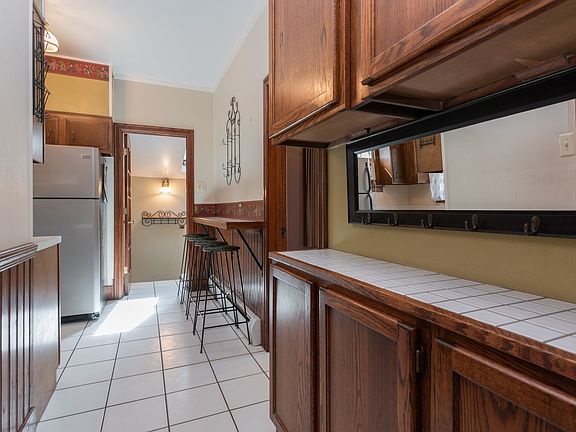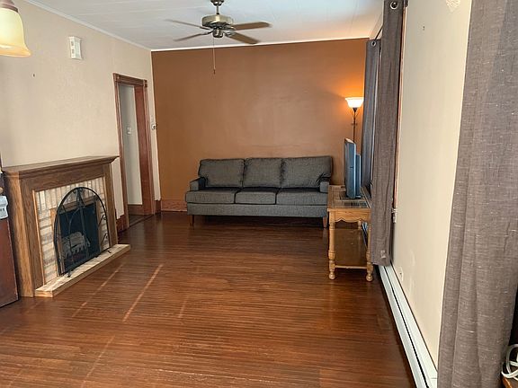 Cute and well maintained home! This home has all the original woodwork, front door and crown molding. Main floor offers 2 bedrooms.Living room combination with dinning room has a arched doorway for separation. Living has a portable fireplace for cozy evenings. Master bedroom has new closet door, knock out area for chest of drawers. 2nd bedroom has nice sized closet, hardwood floors and shelves. Kitchen has tile flooring, stainless steel stove and refrigerator. Breakfast bar with 4 stools built in cabinets. Hallway built in that can be used as a pantry or linen closet. Also basement offers 1 finished room Laundry area with cast iron double work sink, walk in closet/pantry, storage area under stairs. Freezer will stay. Fenced back yard with the area behind garage with privacy panels