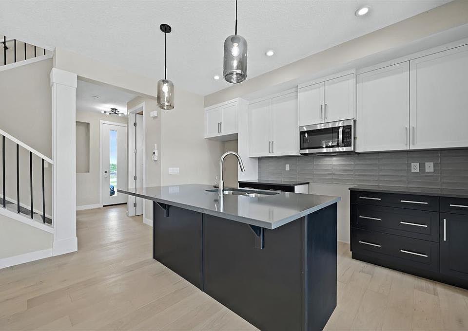 *Photos are representative - some finishes may vary* Welcome to 21 Sora Gate This end unit Kingston model by Douglas Homes offers offers family focused living in the growing community of Sora. This home blends a thoughtful layout, modern finishes, and long-term value in one beautiful package. The open concept main floor features 9-foot ceilings, durable engineered hardwood, and a bright, welcoming atmosphere. The kitchen shines with quartz countertops, stainless appliances, and a large island perfect for busy mornings, casual meals, or hosting friends. Large windows flood the space with natural light, while the electric fireplace adds a cozy touch. A main floor flex room offers versatility for your lifestyle-whether you need a home office, play area, or quiet study zone. Upstairs, the primary suite with walk-in closet and ensuite provides a peaceful retreat, complemented by two additional bedrooms, a full bath, and conveniently located upper-floor laundry. The separate side entrance to the basement adds value and future flexibility-providing options for additional living space. Outside, enjoy full front and back landscaping, a treated wood deck, and the convenience of a detached double garage. With no condo fees and the confidence of new-home warranty protection, this home offers ease, efficiency, and lasting value. Located with quick access to Deerfoot and Stoney Trail, commuting and getting around the city is effortless. Surrounded by wetlands, pathways, and green space, Sora offers a calm, family-friendly environment while keeping everyday conveniences close. Beautiful design, modern functionality, and room to grow-welcome home to the Kingston in Sora. *** The First-Time Home Buyers' GST Rebate could save you up to $50,000 on a new home! You must be 18+, a Canadian citizen or permanent resident, and haven't owned or lived in a home you or your spouse/common-law partner owned in the last four years. Terms and conditions are subject to the Government of Canada/CRA rules and guidelines.***