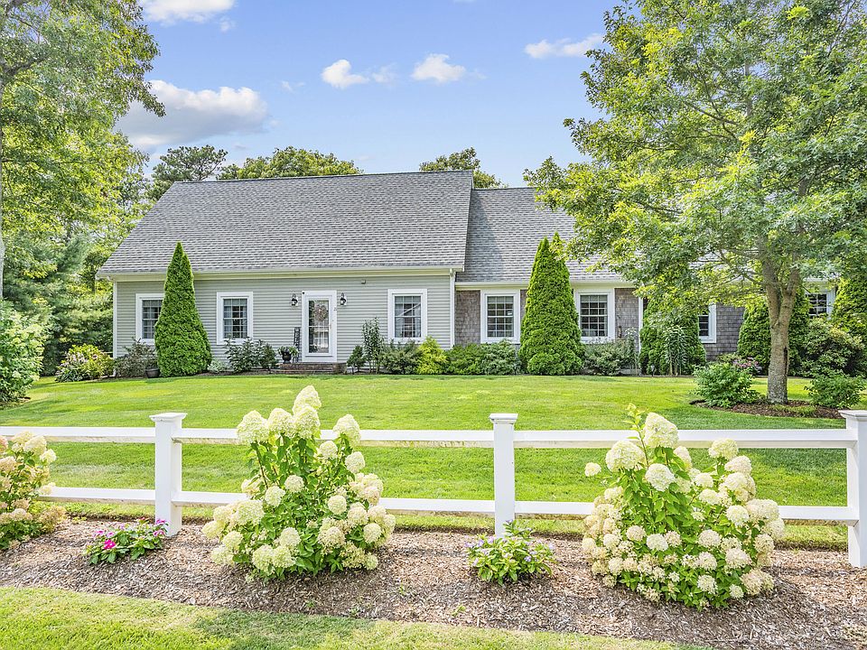 Welcome to a haven of tranquility, where perfect curb appeal greets you at this elegant Cape-style home, nestled on a serene 60,000 sq ft lot in the heart of Brewster. The beautifully landscaped yard sets the tone for the inviting ambiance inside, where 2,480 sq ft of light-filled living space awaits. Designed with entertaining in mind, the open floor plan seamlessly connects the spacious kitchen, living, and dining areas, extending to a deck that offers a view of the private backyard--a perfect spot to unwind. The main floor features a primary ensuite with a walk-in closet and private bath, while two additional guest rooms provide comfort upstairs. A private office caters to work-from-home needs, ensuring peace and productivity. Many recent updates enhance the home's appeal, including a new air conditioning system and bulkhead installed in September, complemented by a 2018 upgrade of the roof, siding, and gutters, along with a 2022 generator installation. Convenience is further elevated by an attached 2 car garage and first-floor washer and dryer. Situated with easy access to two ponds and a bike trail, this home offers an ideal blend of privacy and convenience.