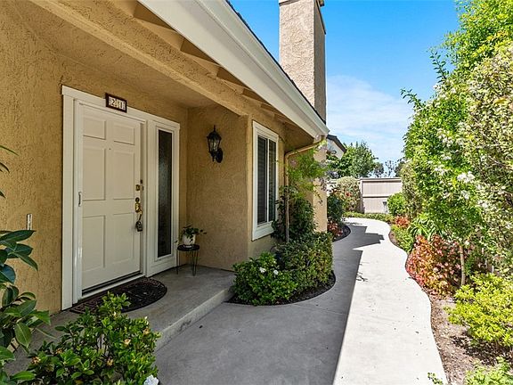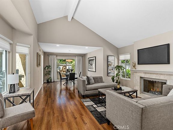 This is it! This highly desired Bently model is a ground level single story home in a quiet location with no rear yard neighbors. It feels like a house with only one shared wall, wrap around gardens, private patio and an oversized driveway. Enter the front door to a spacious open home with beautiful rich wood floors. The open living room overlooking the patio and side yard gardens has beamed ceilings and a gas fireplace. The lovely dining room opens to the back garden area with a trickling fountain, roses and lush greenery. The sunny eat-in kitchen opens to a private patio just perfect for barbecues, entertaining and al fresco dining with an automatic retractable canvas patio cover. It was beautifully remodeled in 2017 with white cabinetry, quartz countertops and tile floors. The Bently plan was originally built to have three bedrooms or two bedrooms with an open den. In this home, it is an open den which can be converted into a third bedroom. The king size primary suite opens to the patio, has a large walk-in closet and a beautifully remodeled (2017) private ensuite bathroom with dual sinks and large tiled shower. The secondary bathroom with a bathtub has also been tastefully remodeled (2017). Beautiful updated windows with custom high end window coverings. This home has been lovingly cared for and will be perfect for the lucky new buyers. Location is conveniently close to North Lake, Lagoon and Tennis Center. Schools, Parks, Pools, Playgrounds and more all within the neighborhood. Plus nearby shopping and dining at Woodbridge Center. Woodbridge is a fun and lovely place to live.