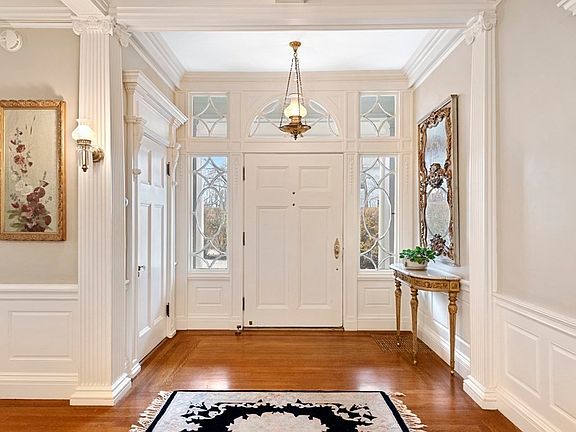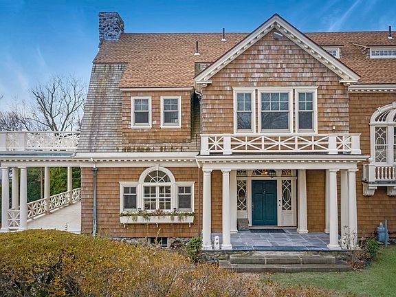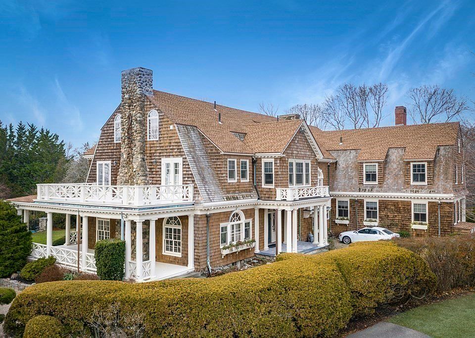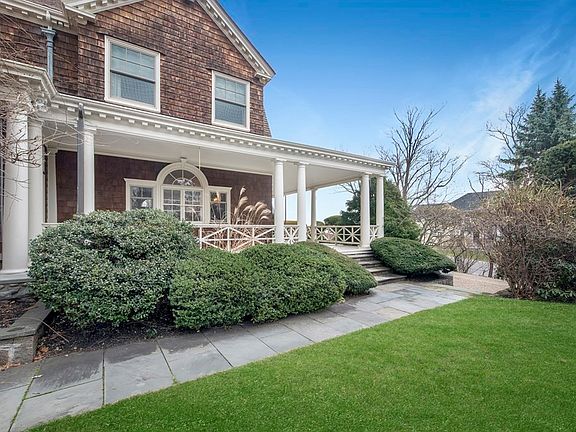 Enchanting ocean view estate with a grand residence, sprawling grounds and in ground pool just a few steps to a sandy beach. Once you enter the grand foyer, you are transported to a time of tradition, style and elegance. A stunning living room has floor to ceiling windows and a marble fireplace. Make your own memories in the formal dining room, perfect for entertaining, with a second marble fireplace, coffered ceiling, period details and French doors that lead to a covered wrap around porch and large bluestone patio. Other highlights include an updated chef's kitchen with two walk in pantries and a cozy family room, 5-6 bedrooms, 4 full and 2 half bathrooms and a separate suite with 3 more rooms for guests or home offices. Rare opportunity to live across the street and own a section of the land leading to the beach and purchase an additional adjacent lot with carriage house. Enjoy the sights and sounds of the ocean from your unbelievably beautiful, private, water view grounds.