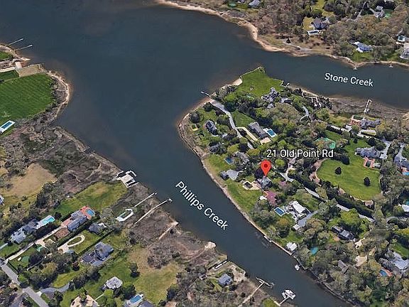 Beautiful, Serene & Traditional Waterfront Property in Quogue, NY on 1.22 Acres nestled on Phillips Creek. Stunning Water Views from the Main House and the Carriage House of Philips Creek and Shinnecock Bay & Dune Road in the distance. Quiet, Dead-End 'Shinnecock Bay beach-view ' street. Bathrooms, Kitchen and Pool Renovated. Stone paving around swimming pool. Permits for Bulkhead and Floating Dock on one of the Deepest Canals in the Area, 6 feet deep at low tide and 8 ft at mean low water mark. 214 feet of waterfront. Includes an utterly charming Grandfathered Carriage House with a 3 car garage. Parking for 10 in the driveway. Underground electric, no overhead lines on entire street, less likely to get lengthy power shortages during storms. Carriage House includes Living/Dining area, Kitchen and 2 Guest Bedrooms and great waterviews. Great to see exquisite sunrise over the bay from both houses!