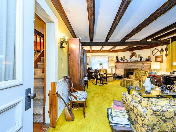 Opportunity is knocking! Here's the chance to build the home of your dreams from the ground up! A secluded & sought after private lot of 1 sprawling acre with endless possibilities- expand on the existing dwelling, or start fresh & create the home you've always desired! Plenty of peace, privacy & serene nature views in a rural setting, yet close to shopping, dining, parks, great schools, easy access to major rds, public transportation to NYC & more! Incredible Land Value!! The current home is a spacious 4 Bed 2 Bath Country Colonial with detached 2 Car Garage & classic Covered Rocking Chair Porch. The interior features a large Living rm with WB Fireplace, sizable Formal Dining rm with original HW flrs & rustic exposed beams that extend throughout. Large Country Eat-in-Kitchen offers a breakfast bar, passthrough window & Dinette space with sliders to the Deck for outdoor dining. 1st Floor Bedroom with ensuite Full Bath + handi-accessible stall shower is extra convenient. Lovely Den off of the EIK holds a cozy WB stove. Upstairs, the main bath + 3 generous Bedrooms. Basement offers extra storage space. Huge Backyard holds a Deck, quaint Patio area & ample space to expand! Whether you choose to upgrade or renovate from the studs up, the possibilities here are truly endless! Come & see for yourself!