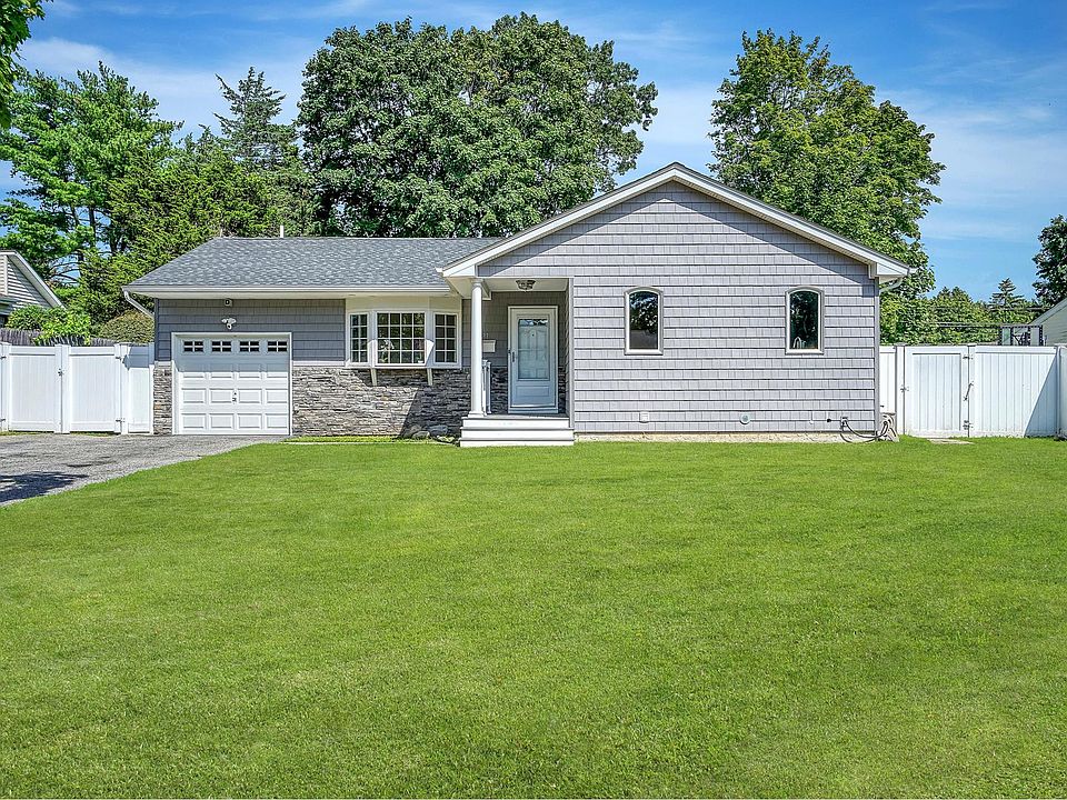 Commack Schools and rare find True Gem! This Charming Fully New renovated inside and outside Ranch house located in Mid-block and a quiet neighborhood. New half Stone Siding, New roof, New Chef's Garment kitchen with lots of cabinets and a convenient side door; Expanded Master bedroom with a Full bath. new Central AC. New Boiler. Gas Heating and Cooking. Private driveway can fits in 3+ cars, and a Fenced big backyard perfect for summer fun. Just pack and move in!