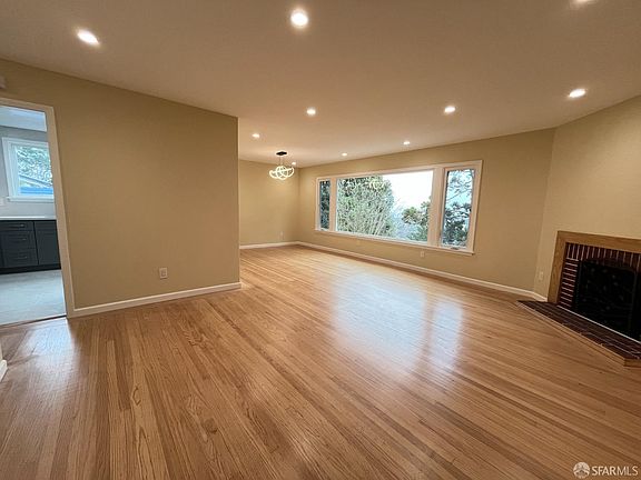 Nestled on a quiet street surrounded by mature trees, 21 Panorama Drive is a fully detached Mid-Century home offering 5 bedrooms and 3 bathrooms across two beautifully updated levels. The upper floor features an open-concept living and dining area with recessed lighting and gleaming hardwood floors, with a decorative fireplace, perfectly framing serene treetop, city views and peek-a-boo view of the ocean. The newly remodeled kitchen boasts stainless steel appliances, sleek cabinetry, and contemporary finishes. Also on this level are an ensuite bedroom and two additional bedrooms, ideal for family or guests. Downstairs, you'll find two more bedrooms, a modern bathroom, and a spacious family room with a wet bar perfect for entertaining or relaxing. Sliding doors open to a tranquil, expansive, flat, remodeled patio surrounded by greenery, creating a seamless indoor-outdoor living experience. All bathrooms have been tastefully remodeled with modern fixtures and finishes. Additional features include in-unit laundry and a one-car garage with extra storage and plenty of street parking. Easy access to shops off Portola and Dewey Ave, Forest Hill Muni Station and US280.