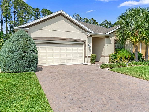 Welcome to Park Place, a vibrant 55+ gated community in Palm Coast where comfort, convenience, and style come together. This move-in ready 3-bedroom, 2-bath home was built in 2018 and offers 1,878 sq. ft. of beautifully maintained living space. Enjoy excellent curb appeal with manicured landscaping, a two-car garage, and a paver driveway. Inside, the open floor plan features ceramic tile flooring in the main living areas, carpeted bedrooms, and vaulted ceilings for an airy, spacious feel. The modern kitchen includes granite countertops, stainless steel appliances, and a large center island perfect for entertaining. The primary suite offers a walk-in shower, dual vanities, and a generous walk-in closet. Additional bedrooms provide flexibility for guests, a home office, or hobbies. The third bedroom is non-conforming and ideal as an office or craft space. Relax outdoors in the fenced backyard or on the screened lanai with epoxy-finished flooring and a ceiling fan, perfect for morning coffee or evening dining. The garage features epoxy flooring, custom cabinetry, and a garage screen enclosure for added ventilation. Additional features include custom hurricane window panels, a generator, and an installed transfer switch for power backup. Residents of Park Place enjoy resort-style amenities, including a heated seasonal pool, bocce, shuffleboard, horseshoes, a putting green, outdoor kitchen, and lit sidewalks for evening walks. The HOA fee ($230/month) includes lawn care, internet, and cable, with no CDD fees. Located in one of Palm Coast’s desirable 55+ communities, this home offers a perfect blend of modern features, low-maintenance living, and peace of mind. Buyer to verify measurements. 3rd bedroom is non conforming