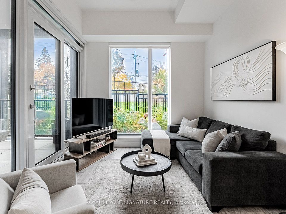 Experience modern living in the heart of Port Credit Village at Edenshaw's TANU Condos - where design, convenience, and lifestyle meet. Perfect for first-time buyers, young professionals, and those working remotely. This beautifully designed 1-bedroom + large den suite (688 sq. ft.) offers the ideal blend of flexibility, comfort, and style. The den is enclosed with sliding doors and can comfortably function as a second bedroom or private home office (see floor plan). The sleek kitchen features high-end integrated appliances and modern cabinetry, opening seamlessly into a bright living area framed by large windows and 11-ft ceilings (exclusive to ground-floor suites) that create an airy, open feel. Enjoy smart-home technology, keyless entry, and access to premium amenities including a fitness centre, yoga studio, co-working space, guest suite, pet spa, and more. Rogers unlimited high-speed internet and cable package are included in the condo fees for added value and convenience. Perfectly situated for commuters and lifestyle lovers alike, you're just a 4-minute walk (or 2-minute drive) to the Port Credit GO Station, and just 5 minutes from the QEW, providing effortless access to downtown Toronto and the entire GTA. After work, unwind along lakeside trails, cafés, restaurants, and boutique shops, or take your dog for a stroll through this vibrant, walkable neighbourhood. Whether you're working from home, commuting into Toronto, or relaxing by the lake, TANU Condos offers the perfect blend of modern living and Port Credit charm.