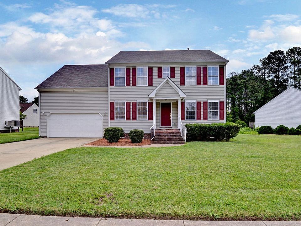 This 4 bedroom 3.5 bath house is conveniently situated close to Langley Air Force Base, less than 4 miles to Peninsula Town Center and 6 miles to Buckroe Beach. The master bedroom and two other bedrooms are upstairs. The very large master suite features 2 columns dividing the main bedroom from an alcove and has a very nice tray ceiling. The master bath has an oversized soaker tub and his and hers vanities. The fourth bedroom/guest suite with bath is accessible via a separate staircase next to the kitchen. Columns add an elegant touch to the foyer and entryway of both the living and dining rooms. The formal dining area also features a tray ceiling. The family room has a gas fireplace with a bar area adjoining the spacious kitchen. The kitchen has all the appliances, a nice pantry, and has a bay window in the informal eating area. There is a separate laundry/mud room off the kitchen and a deck out back. No smoking, please. Pets considered