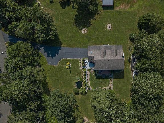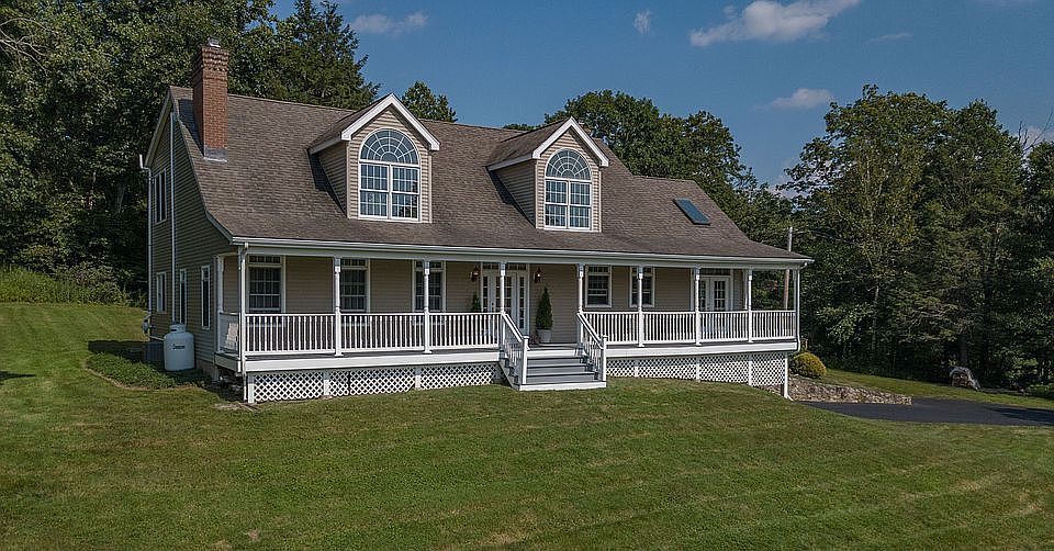 This spacious 2800 SF 7 Room 3-BR, 3-Ba Contemporary Cape has an exceptional layout & is located on a lightly wooded & beautifully landscaped 1.8 acres on a cul-de-sac in a family neighborhood. Listen to the sounds of nature from 3 decks & watch gorgeous sunsets from kitchen windows. On the 1st floor, the Spanish-tiled kitchen & dining room have cathedral ceilings & oodles of sunlight streaming through picture windows, skylights, and French doors. The kitchen boasts of gorgeous hickory cabinets, a large central island with a gas stove-top, 2 ovens & stainless-steel appliances. The large living room with crown molding has a brick fireplace with a wood-stove insert which helps contain heating costs. Two large bedrooms, two baths & an office round out the first floor. The 2nd floor hosts a generous, sunny Master bedroom & an expansive, open & airy Family/Community room where you can also watch the sun set. The basement boasts of a tiled man-cave with a bar and stone fireplace which is perfect for entertaining as well as a tool bench and a paint corral for the handy person in the family. The property is well-cared for & has been remodeled since its major renovation in 2004. New Furnace & dishwasher along with recently added 2nd floor AC. Hardwood floors throughout. For the kids: Excellent school district with bus pick up at the end of the road (1/10 mi). This home is perfect for a family as well as a weekend get-a-away. It must be seen to be fully appreciated!