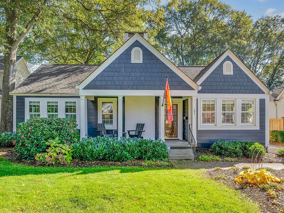 Welcome to this exceptional home that perfectly blends timeless charm with modern luxury. Nestled in one of the most sought-after areas in Greenville, this Augusta Road charmer will capture you from the moment you arrive. Step inside to discover a bright, open concept with elegant finishes, designer features, vaulted ceilings with wood beams and an abundance of natural light. The kitchen boasts a new dishwasher, new microwave, new faucet with filtration system added, quartz and wood counters and plenty of storage cabinets and shelving to showcase your favorite pieces. You'll also love the new CB2 shelves installed in the dining area, just off the kitchen. Plenty of room to get cozy in the living room with a gas fireplace and extra space that can be used as formal seating or as an office. Pour up a drink and entertain your guests with the new dry bar and wine fridge added. The graciously-sized primary bedroom includes a private wet bar and wine fridge as well, along with a screened-in porch just perfect to enjoy a movie night or morning cup of coffee-its quite the private retreat! The newly sodded backyard is fenced-in with irrigation in the front and back, and the 1-car garage is large enough to park and store any needed items. The flex space upstairs offers extra room for whatever your lifestyle calls for - media room, playroom, craft room, office, you name. it. Most interior rooms have been re-painted with SW emerald paint and sellers also added new exterior door hardware with smart locks, Google smart doorbell, NEST thermostat and replaced the water heater and washer and dryer all within the last year. Located less than 2 minutes from the excellent rated Augusta Circle Elementary, and minutes from some of the best shopping and restaurants downtown Greenville offers, this home is ideal for families seeking both luxury and convenience. Take your golf cart to neighborhood gems and meet all your new neighbors! Don't miss this rare opportunity to own a truly stunning bungalow in one of the most desirable areas!