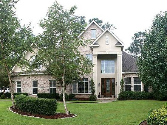French style home on 3/4 acre cul-de-sac homesite. It is one of the largest lots in the Estates of Northpark, and it backs to greenspace. Subdivision is gated, has a community pool, playground, and duck pond. The foyer and den have a 2-story ceiling which shows off a wall of windows, an arched doorway leading to the kitchen, and curved staircase banister. There is a double mantled fireplace with granite surround in the den, and built-in bookcases frame it. Hardwood flooring adds to the be...