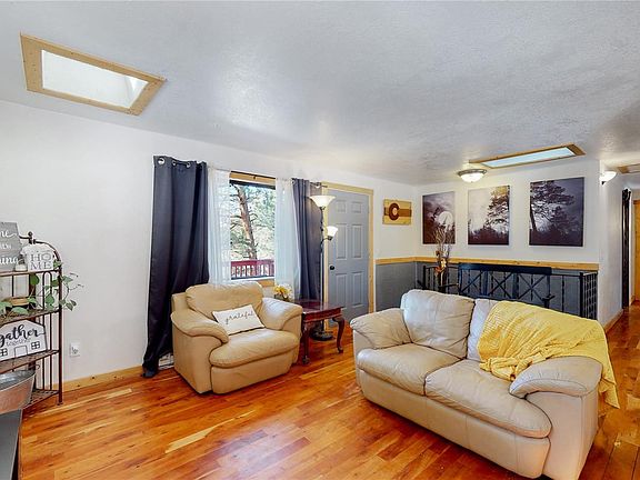 Rustic Mountain Retreat in the Secluded Parkview neighborhood. Easy access to Crow Hill & HWY 285 and a stone's throw from the Sleepy Mountain town of Bailey! This Bright, Open Raised Ranch Floorplan boasts a host of upgrades including a Hickory Kitchen with Stainless Appliances, Huge Tiled Island. Rustic Wood Pantry, Doors and Trim. Door to Private Deck (15'x10') off Living Room. Rennai Gas Heater, Ceiling Fan, Two Master Bedrooms, Wonderful Detached 2 Car Garage with large Living/Kitchen area above (not included in the Total Squft) and Deck (19'x12') covering an additional Carport. New Laminate Flooring on lower level. Large Laundry/Mechanical Room with Washer/Dryer Hook-ups and 600 gallons of Additional Water Storage! Dog Run. A Great Floorplan with 4 Beds and 3 Baths and Nestled in the Trees. A Great Mountain Home in a Wonderful Bailey Neighborhood!
