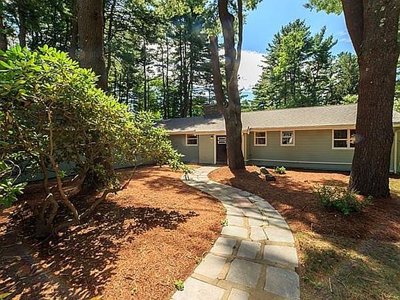 Easy & convenient living, perfect for entertaining and enjoying nature, in a private setting on a cul de sac among the tall pines in the historic town of Sudbury. This great neighborhood is close to everything yet feels worlds away in the woods; just over 1 mile from the elementary school, Routes 20 & 27, shopping, restaurants & markets. Expansive single floor living, perfect for families or older couples looking to stay in town w/a more manageable floor plan. Large living room opens into dining area & encourages gatherings of family & friends. Transition the party from the sun room w floor to ceiling windows out to the patio and private backyard abutting woodland on sunny days. Enjoy a warm wood-paneled den w fireplace on cooler days. Master bedroom & bath w/two additional bedrooms. Storage galore! Many hall closets incl cedar, a walk-up attic & huge basement. Spacious 2C direct entry garage keeps you dry. Take advantage of this opportunity to make this light-filled home your own!