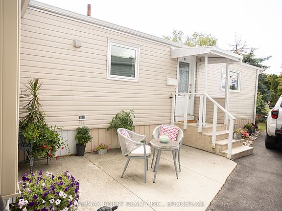 Looking for move in ready? Well take a look at this lovely mobile in Worthington Park situated across from a treed park and boasting many upgrades including new flooring, paint, Bathroom, Kitchen Bosch Washer and Dryer, Microwave over Stove and fridge, this home is ready for new owners. This 2 bedroom home offers many upgrades inside and out from the paved driveway with space for 3 cars to the cement patio and walkway, deck and loads of storage. This beautifully landscaped lot is a gardeners delight. Lovingly looked after this gem is a must see. The current land lease for new owners is $675/month tax portion is 52.45/Month