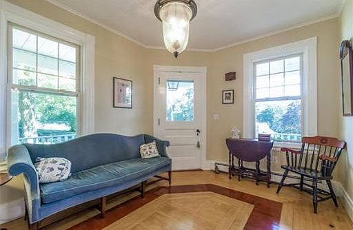 Priced to Sell! Don't wait .. take a look at this charming Antique Farmhouse complete with barn on a pretty corner lot! Relax on the 3 season porch or enjoy your garden areas. Inside you will find an inviting kitchen complete with an office nook, beautiful HW floors throughout, 2 updated baths, sunny fireplaced LR and nooks & crannies everywhere! There is an unfinished 3rd floor waiting for your ideas or just sit out front on the wrap around porch. The barn offers many possibilities for use! Great commuter location walking distance to local shops. This home was moved to it's current location when the Reservoir was built.