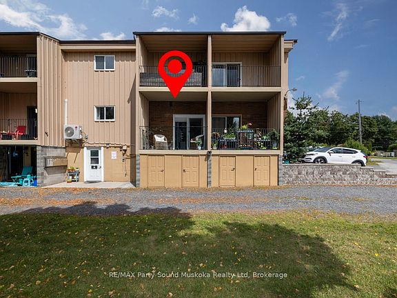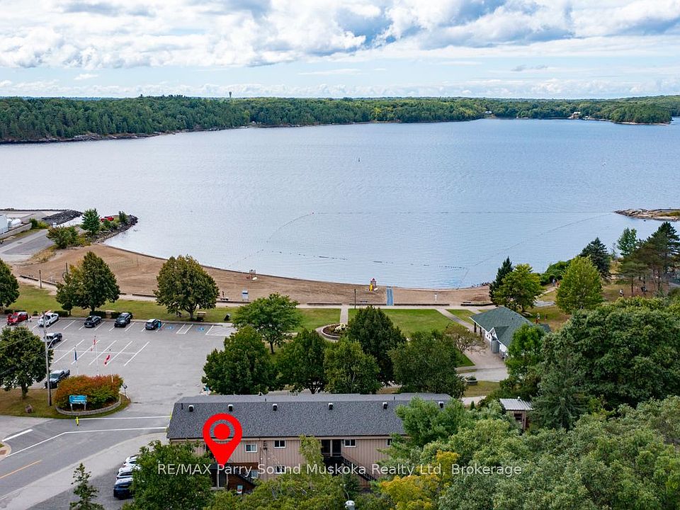 GEORGIAN BAY WATERFRONT VIEWS! Preferred Main Floor 1 Bedroom Condo, STUNNING SUNSET SKIES right from your private balcony! Located in a desirable neighbourhood steps from the BEACH, BOAT LAUNCH & FITNESS TRAIL, High ceilings, Open concept, Tasteful decor, Updated flooring, New kitchen w quality appliances, BI dishwasher, Updated 4 pc bath, Immaculate & move in ready, This is a great home for a first time Buyers, Retirees/snowbirds, Cottage vacation getaway, Pop your kayak in the Bay & away you go! (No pets permitted. Visitor pets may be allowed for short time frame. No short term rentals for peace of mind and quiet). $431.49/month condo fee includes, water & sewer, grounds/common area maintenance, snow removal, 1 parking space & 1 storage unit. Laundry room has new Maytag washer & dryer, Move in ready, Parry Sound offers great shopping, schools, restaurants, Stockey Entertainment Centre, Excellent hwy access to the GTA, Embrace Georgian Bay Living Today!