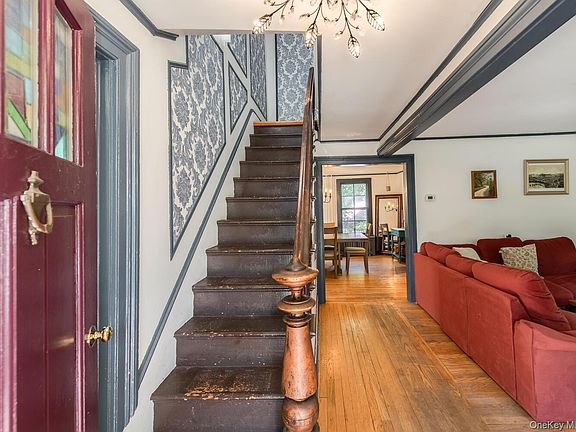 Steeped in history and charm, this circa-1900 village gem welcomes you with a classic rocking chair front porch and beautifully showcases original woodwork, hardwood flooring and period details thoughtfully preserved throughout. Inside, warmth and character meet modern comfort with freshly painted interiors, spacious living and dining rooms, 2 bedrooms, a versatile office or den and 1.5 baths. The beautifully renovated kitchen blends timeless style with today’s functionality, featuring quartzite counters, stainless steel appliances, and a seamless flow for effortless entertaining. A walk-up attic invites endless possibilities for future expansion, while the full unfinished basement provides abundant storage and workspace. Outside, a two-tier deck, patio and fenced-in yard create an enchanting setting perfect for relaxing or gathering with friends under the stars. Nestled in the heart of the quaint Village of Brewster, this home offers the best of walkable living – less than a 5 minute walk to the train (Metro North), great shops and parks. Also, just a quick drive to Lake Tonetta with beach access for town residents and the Maybrook Rail Trail for walking/cycling enthusiasts. Don’t miss the opportunity to own this special home.