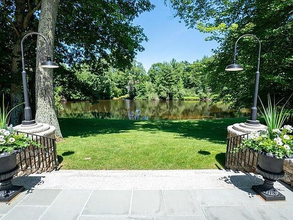 Built to exacting standards of owner, this gorgeous shingle and stone colonial in prime Southside sits impressively on 1.61 acres of manicured gardens overlooking scenic spring-fed pond. Beautifully proportioned sun-drenched rooms with every amenity for grand entertaining and serene work & leisure space showcase impeccable craftsmanship in sumptuous molding,columns, built-ins, high vaulted/coffered ceilings.Gracious foyer has curved entries to formal living room, banquet dining room while striking columns frame stunning water views through fieldstone fireplace family room with doors to spectacular bluestone terrace & cherry paneled library.Chef's kitchen has bay window breakfast room with fireplace, mudroom to heated 3-car garage. Spectacular office with built-ins, 4 bedrooms/baths on 2nd floor include gorgeous master suite with fireplace, balcony, walk-in closet, spa bath, flexible den/nursery. Private 3rd floor suite features bedroom/sitting room/bath. Lower level has media/game/gym