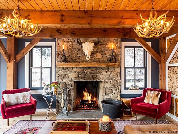 - Fireplace features: Living Room, Stone, Wood Burning