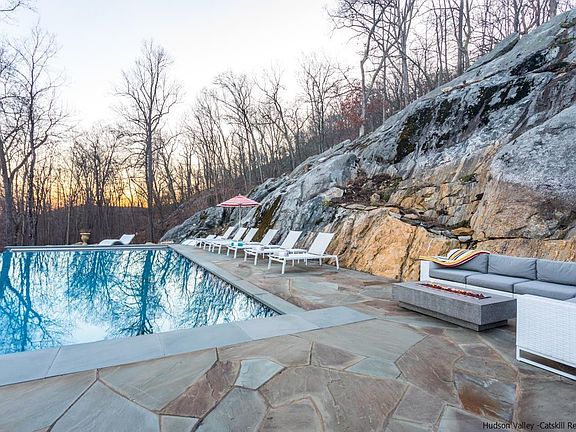 Want it all? Look no further than this personal sanctuary an hour from Manhattan. Meticulously designed and maintained, 21 Red Oak Lane is a 4 bed, 4 bath home nestled on 17 acres in the Hudson Valley. Recently lavishly renovated, this property promises years of low maintenance pleasure, while the impeccable design evokes the warmth and romance of a farmhouse with an upscaled elegance and every modern convenience. Decompress in the heated salt water pool or luxuriate in the hot tub; admire mountain views from the outdoor fire place; gather in the games room or enjoy a movie in your home theatre. Harvest organic vegetables from the garden; meander trails, or simply relax next to the koi pond as you stoke an outdoor wood fire. Perfect for entertaining, the home offers multiple seamless indoor outdoor living opportunities. The primary suite is a refuge housing a private lounge and media area. Watch wildlife from the huge picture window in the en suite shower, or admire the sunset from your private deck. Features of the breathtaking grounds include a rock wall sparkled with color from lichens and plants; wild flowers that hug the house perimeter; a birch stand flanking boulders; and a wild meandering forest. There’s no shortage of attractions within 30 minutes. Golf at a local course; boat or fish in the Hudson River; stroll through an Audubon Sanctuary or hike to a waterfall at Arden Point. Shop for your favorite designs at Woodbury Commons; meander through the outdoor sculptures at Storm King Art Center; or catch dinner and modern art in nearby Beacon. No compromises here, just accessibility to a balanced life with a home base in a serene enclave conveniently located minutes to Metro North. Come see for yourself! Pls Note: Taxes 2022/23 were $19,149
