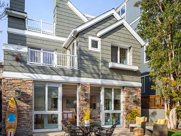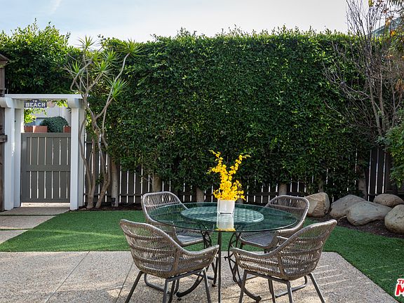 South facing custom built Hampton style home is moments to stepping stones and a mystical expansive beach for you to enjoy surf and sunsets.The spacious living area with walnut floors and fireplace leads you to the large private yard perfect for alfresco dining. Chef's kitchen features Carrara marble, stainless appls, w/2 convection ovens. Den/Bedroom complete the first floor.The 2nd floor enchanting master retreat complete with fireplace, balcony to enjoy coastal breezes and cozy sitting area, boasts two large walk-in closets. Resort style marble bath features Double vanities, glass waterfall shower and jetted tub.Two additional bedrooms, bath and convenient laundry room. The 3rd floor family room/home theater with bar and fridge, opens to a rooftop terrace complete with fireplace and hot tub providing endless opportunities for entertaining family and friends. 2 car direct entry garage with addt'l parking space. Ultimate coastal living on Marina Del Rey Peninsula near trendy Venice.