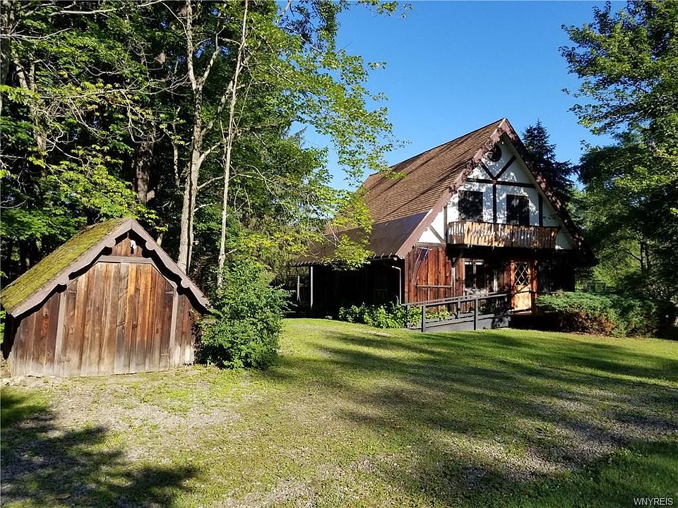 A view and yard like no other in Craneridge! This home needs cosmetic work but the potential is limitless. Cozy kitchen opens to dining/familyroom combo with beautiful wall-to-wall window views of the Kissing Bridge hills, while enjoying the warmth of the fireplace. 3 bedrooms plus a loft area. Newer furnace. Full deck (needs repair) will be ideal to sit and relax in peace and quiet among the trees to enjoy all the wildlife of Craneridge. Many hiking/biking trails, community pool and playground. Spraguebrook park is walking distance and adds to outdoor activities including fishing. If you enjoy winter too, this place will not disappoint! Skiing, snowshoeing and just the shear beauty of this community. Being sold "as-is" but OH THE OPPORTUNITIES!! Less than 30 minutes to Wegmans!
