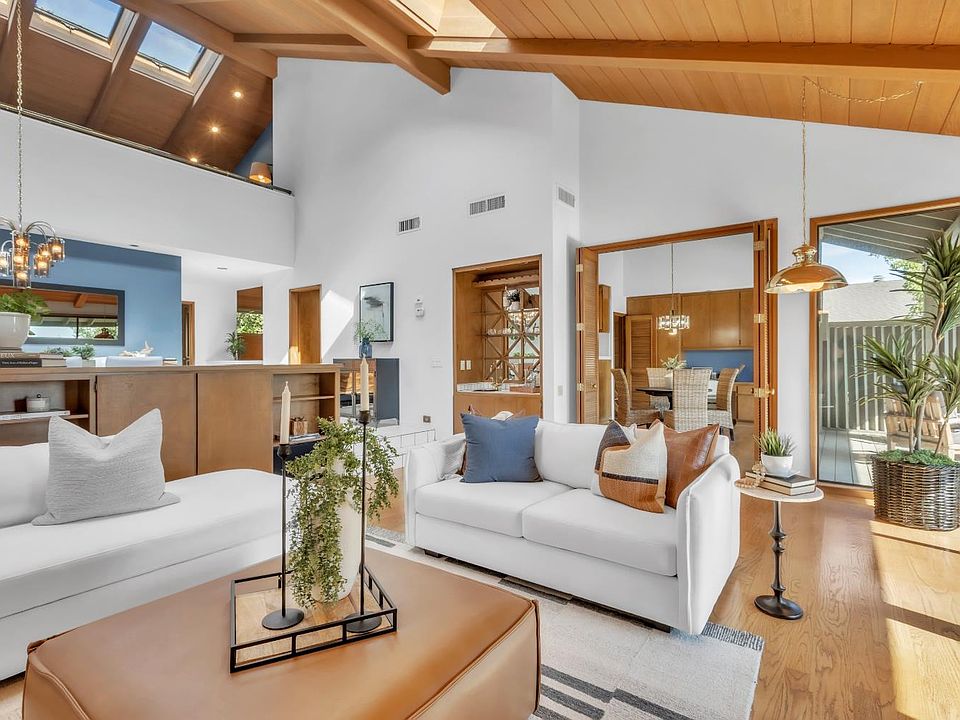 Large loft areaSpiral staircaseBluff lotItalian tileSoaring ceilingsDining roomBack decks
