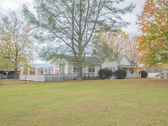 Cute farmhouse with three bedrooms and two separate living areas. Oversized living room with gas fireplace, large Eat In kitchen with new flooring and huge utility room! New LED lighting throughout the house. Covered carport/storage area with LED lights. Separate workshop with electric. Large front and side porch! New Ramp installed going up to deck. Seller is leaving wood plank flooring in the den area for future use. Gorgeous views! This is Country living at its best with high-speed Internet.