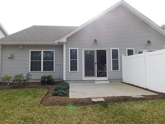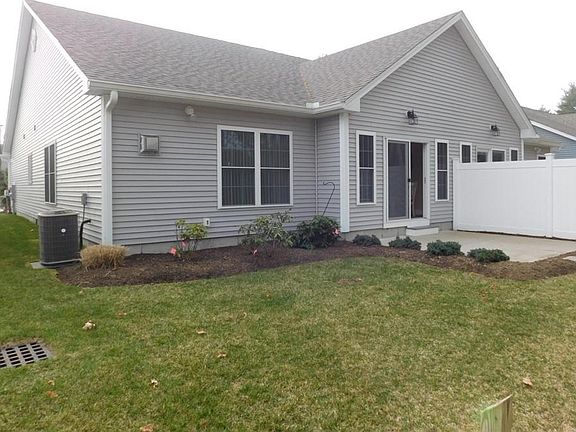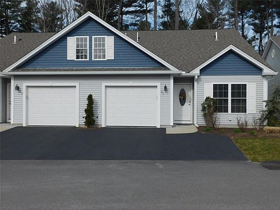 One level 1,500 sq.ft. condominium built in 2018 with open floor plan located in pristine Rivers Edge - a 55+ community conveniently located in Central Coventry. Features include 2 bedrooms, 2 baths, a large peninsula kitchen with granite countertops and stainless appliances, open living/dining area that includes a gas fireplace, laundry room, and 1 car attached garage with stairs to storage above. The sunroom contains double pocket doors leading to the master bedroom on one side and a slider on the opposite side that exits to your own private patio with a scenic view. Other features include engineered hardwood, tile floors and central A/C. There are almost 10 acres of open space woodlands with walking trails along the Pawtuxet River. Use 1320 Main Street, Coventry, for your GPS.