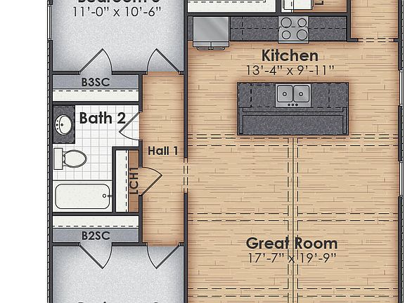 Designer finishesPlenty of natural lightFront porchLarge islandOpen-concept great roomWalk-in closetPrivate bath