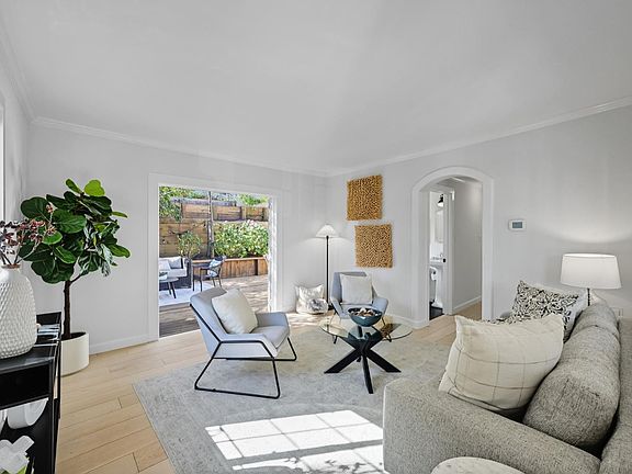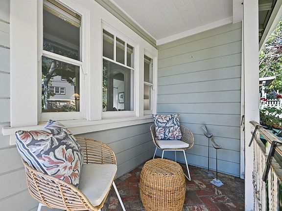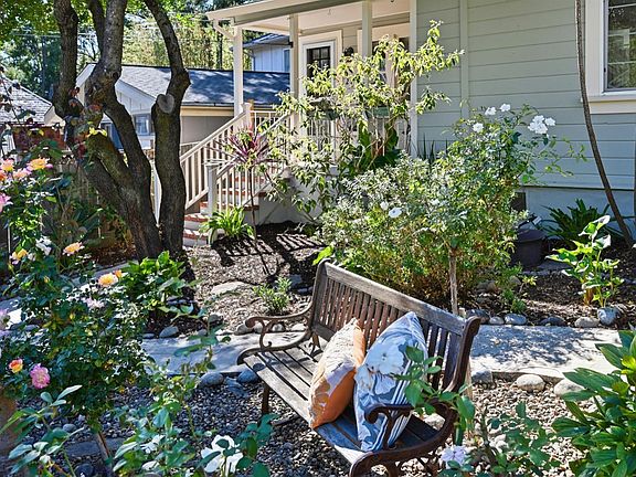 Nestled behind a beautifully maintained rose garden, this charming 2-bedroom, 1-bath cottage blends timeless character with a well-conceived floor plan. A welcoming front porch invites you to relax and sip lemonade while enjoying the peaceful surroundings. Inside, the home features driftwood-hued hardwood floors, crown molding, and French doors that open to a spacious deck ideal for indoor-outdoor living. The thoughtfully designed kitchen showcases custom cabinetry, stone countertops, stainless steel appliances, and a cozy breakfast nook overlooking the serene backyard. Perfectly situated near miles of open space and scenic trails, this home offers a rare combination of tranquility and convenience just moments from Brookside Elementary and the vibrant shops and restaurants of downtown Fairfax and San Anselmo.
