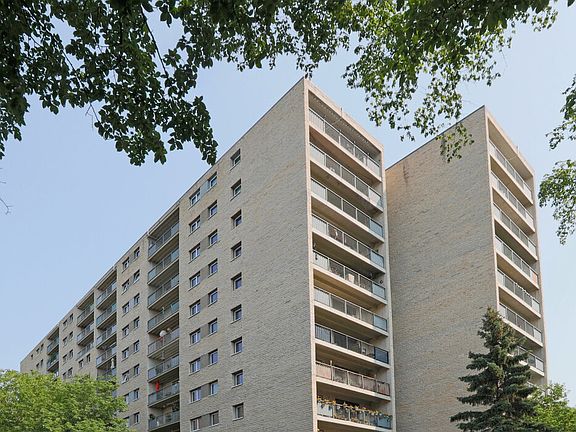 A 12-storey, riverside apartment building in the heart of Osborne Village at 21 Roslyn Road, with breathtaking views of the Legislative Grounds, Downtown and surrounding areas. Each suite has its own covered balcony. Pet friendly. Cable and Central Air included. Underground parking available.