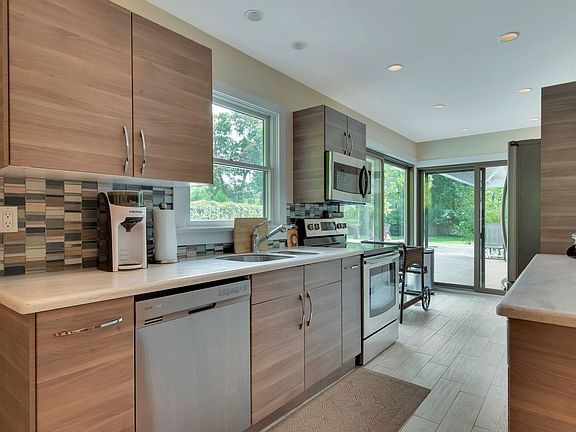 Great location with huge yard , pool, deck, large covered porch off the kitchen, two paver patio's, outdoor shower, large shed, total privacy! Just bring your bags, this is move in condition with 3 bedrooms 3 full baths, updated kitchen with stainless appliances, full finished basement with washer and dryer, bilco doors to backyard.