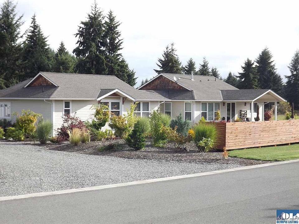 New custom built mountain view home on 1.6 acres located between Port Angeles and Sequim. Home is 2 bedroom, 2 bath, plus an attached guest suite with 2 rooms and a full bath. With 9' ceilings, a ductless in ceiling heat pump, Brazilian cherry hardwood floors, maple cabinets, top of the line stainless steel appliances, a gas fireplace and a walk-in tiled shower in the master bath. Attached 2 1/2 car garage plus a 700 SF detached shop. Beautifully landscaped and a covered patio with Southern exposure.