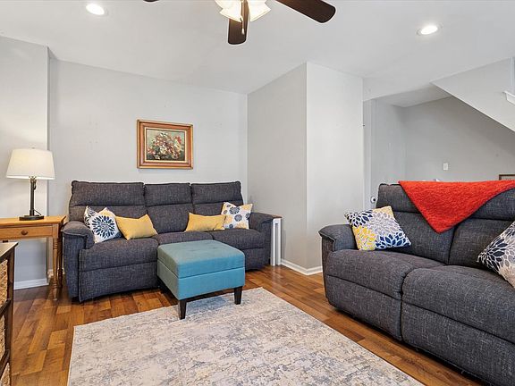 Imagine coming home to a sunlit townhome tucked into the desirable community of Cambridge Square, where comfort meets convenience at every turn. As you step through the front door, you’re greeted by a bright and airy living room with warm luxury vinyl plank flooring, recessed lighting, and a ceiling fan for year-round comfort—setting the tone for relaxed, everyday living. Start your mornings in the eat-in kitchen, where tile floors meet stainless steel appliances and the scent of fresh coffee fills the space. Wood cabinetry and a tile backsplash add charm, while sliding glass doors invite you outside to sip your coffee on your deck overlooking the expansive common backyard. Upstairs, two spacious bedrooms, one with dual closets and one with a large walk-in closet, offer peaceful retreats, each with ceiling fans. The Jack and Jill bathroom, complete with a double vanity and tub/shower combo, makes sharing a breeze. Head down to the fully finished basement with a bar—a flexible space perfect for movie nights, workouts, or your new home office. With plush carpeting, recessed lighting, ample storage, and a dedicated laundry room, it’s as functional as it is cozy. Pull into your private two-car driveway after a weekend at nearby Linvilla Orchards, or an afternoon browsing The Promenade at Granite Run. With local dining favorites and major highways just minutes away, everything you need is right where you want it. This is more than just a home—it’s the lifestyle you’ve been looking for.