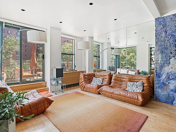 Off the welcoming living area is a grand terrace, generously proportioned to fit a couch, chairs and table to enjoy treetop and river views to the west, and northern views of Battery Park City.