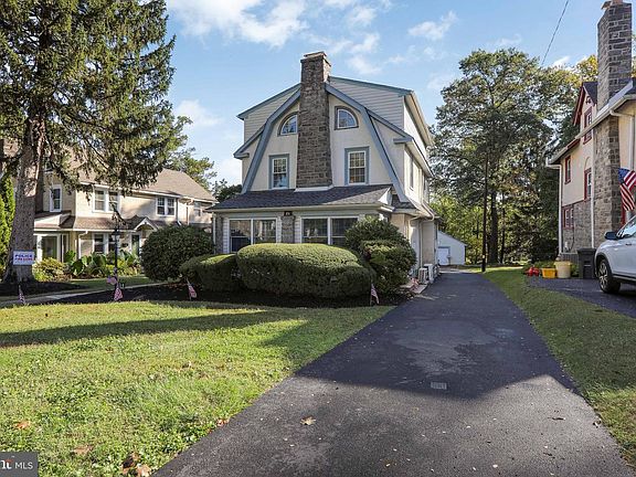 Meticulously maintained home located on one of the most desired streets in Springfield Township. Located on a tree lined street just blocks away from the center of town with shops and restaurants and walking distance to schools, public transportation and parks. This beautiful home features 4 bedrooms and 1 full and 1 half baths plus a full finished basement. Enter the home into the formal living room with gas fueled stone fireplace. The original front porch has been enclosed and can now be used as a den, playroom or home office space. Family gatherings can be held in the spacious formal dining room that leads to the bright clean eat in kitchen. The second floor features 3 large bedrooms with ample closet space and the full hall bath. The finished 3rd floor features the 4th bedroom plus a bonus space. This level offers many possibilities to create your dream master suite. There is ample space to add another full bath plus a walk-in closet or office space. Large skylights bathe the space in natural light. The large finished basement features a family room as well as laundry and storage areas. During the summer entertain on the back deck that overlooks the backyard and detached 2 car garage.