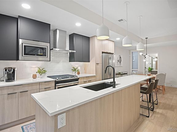 WOW! This is the urban townhome you've dreamed of! Rooftop deck with stunning 360-degree panoramic views of Denver and the Rocky Mountains! Walk to the Denver Country Club! Less than a mile to Wash Park, 1.5 miles to Cherry Creek shopping and restaurants, and super easy access to the Cherry Creek bike path! Enter on the main level with a tandem 2 car garage (most units have a 1 car garage). Up to the 2nd level, you'll find a sunny living room, kitchen with all stainless appliances, and a spacious dining room! The 3rd level features a generous master suite with a walk-in closet and private 3/4 bath, and the secondary bedroom has a private full bath - great setup for roommates! The laundry closet with stackable washer and dryer is also located on this level! One more set of stairs leads to a skylight that doubles as the door to the rooftop patio! Imagine watching Colorado Rockies and Downtown Denver New Year's Eve fireworks from your own deck! This is a great space for entertaining! Some extra special features include plantation shutters throughout, Level 2 charging station, tandem 2-car garage! Party wall agreement with community maintenance fee - includes landscape maintenance, snow removal, and water! These highly desirable units rarely come on the market! Better hurry! Fly thru this house by visiting https://youtu.be/ZgEAq4PsoTo.