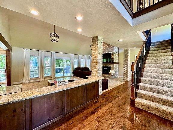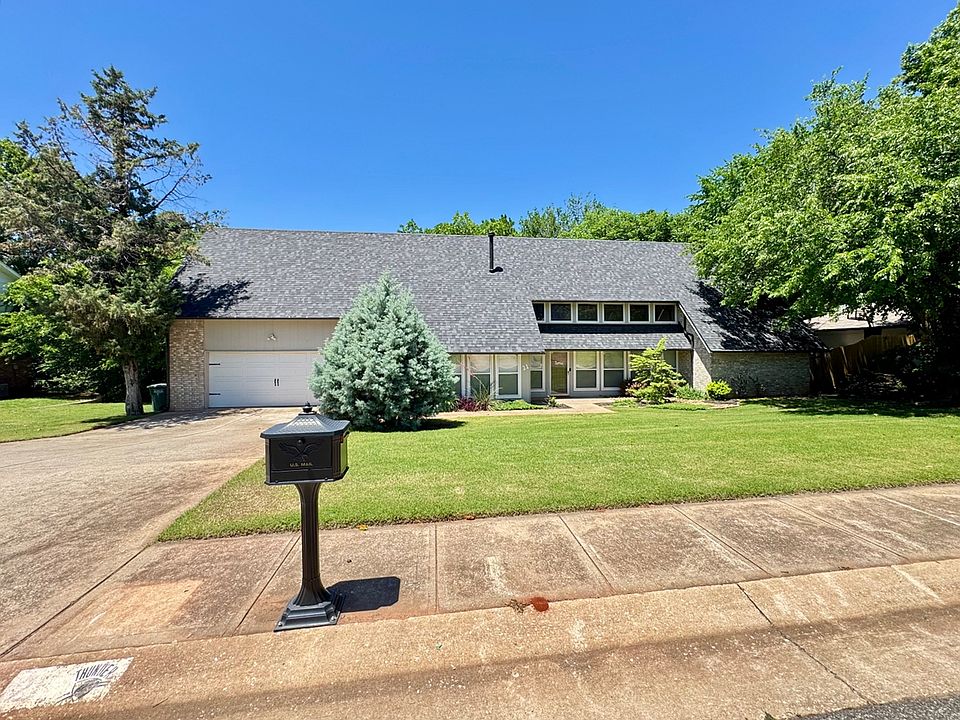 Incredible Contemporary home in Edmond's coveted The Trails neighborhood, situated on a large .39 Acre wooded interior lot. Boasting a grand amount of living space on the inside with tons of natural light, downstairs you are greeted with the large open concept entry area that flows into the living room/wet bar area and kitchen. Formal dining area was enclosed and currently being used as an additional bedroom/flex space across from kitchen. Remaining downstairs is a 1/2 bath, Master suite w/ private patio access & quaint Master bath. Upstairs contains 3 remaining bedrooms, 2 with private balconies overlooking the backyard + Jack N Jill bathroom. Abundant storage throughout, maximizing the space with added closets/built ins. *In ground storm shelter in garage* Everything but the hot tub in the backyard can remain with the house if desired. *Pets allowed on case by case basis with owners approval and $250 upfront + $30/month per pet.*
