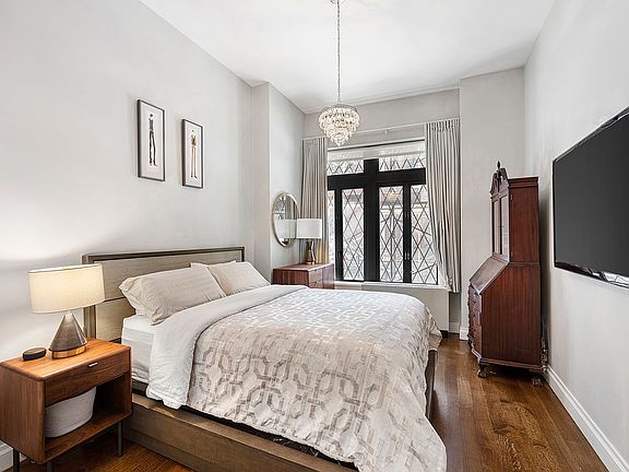 As you enter the apartment, a sense of opulence greets you. The entry foyer introduces a feeling of grandeur with nearly 11 foot high ceilings and two closets. This leads you to the oversized bedroom which features a generous closet and a large window detailed with traditional Tudor-style diamond-paned glass.