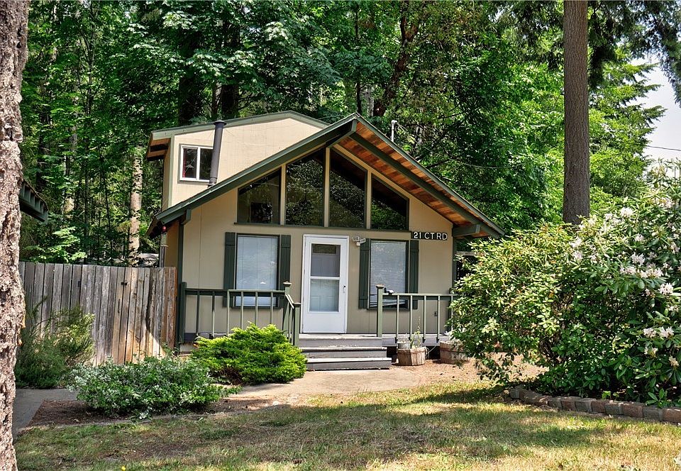 PERFECTION COMES IN SMALL PACKAGES...Great cabin getaway or downsizer! BEAUTIFUL BEACH ACCESS WITH DOCK AND LAUNCH! Short term moorage as well. Sweet 1 bedroom A FRAME with potential 2nd loft bedroom. New propane stove for chilly evenings, fir floors, cute kitchen with eating bar. Awesome oversized one car garage and plenty of room for RV or boat storage with 2 gates to bring in the big rigs and keep them safe. Monster yard. So come check it out and make sure you hit the beach before you leave.