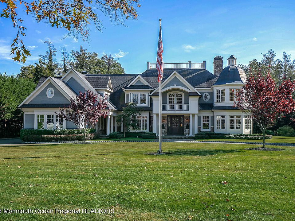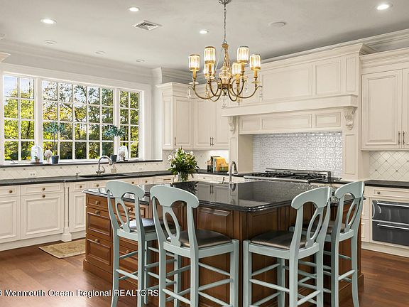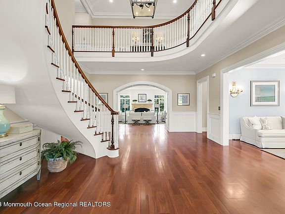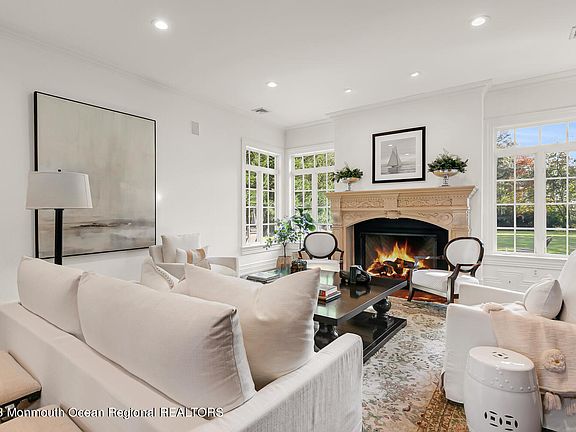 Perfectly set in one of Rumson's most sought after estate neighborhoods offering unparalleled quality & craftsmanship. The interior features an open floor plan, high ceilings, & abundant natural light. Details like custom millwork, solid raised-panel doors, radiant heating & wide-plank hdwd floors elevate the space. The gourmet kitchen is a chef's dream, complete w/ an ovszd isl, high-end cabinetry, prof grade appl, & a butler's pantry leading to a formal DR w/ coffered ceiling. All BR's offer high-end en-suite baths, incl a lavish primary suite w/ a spa-like bath & enormous walk-in closet. Beautifully proportioned prop w/ bluestone patio & a private, expansive deep rear yard-plenty of room for a pool! TOO MANY AMENITIES TO LIST-1st fl guest suite, expansive bonus rm, 50-kW gen & more!