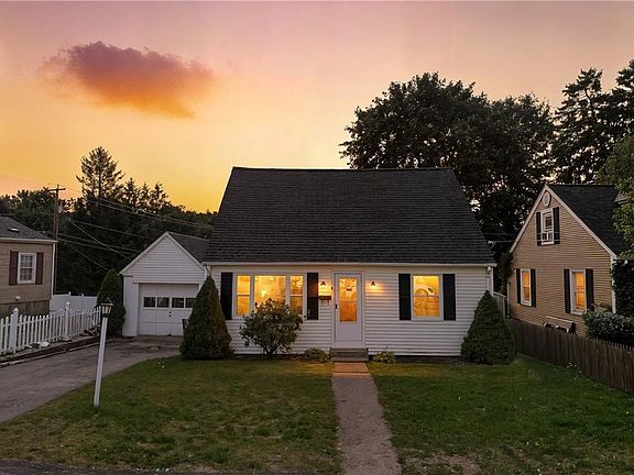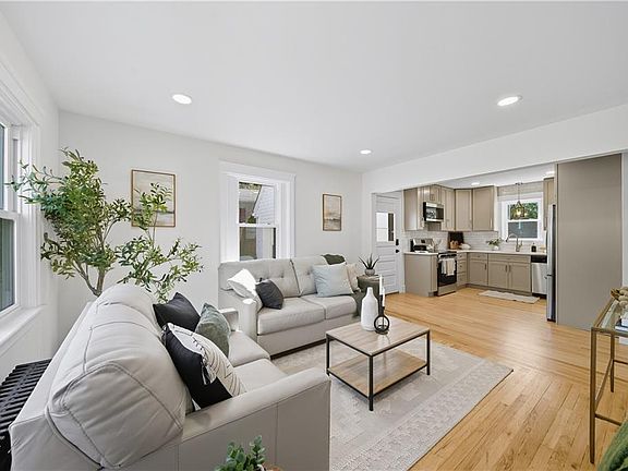 MINT CONDITION BUT PRICED TO MOVE! NEW ROOF, WINDOWS, OIL TANK, HEATING SYSTEM, APPLIANCES, AND MORE! Move right in and enjoy this stunningly renovated mid-century Cape with 4 bedrooms, 1 full bathroom, front and backyard, and garage! From the moment you enter, gleaming hardwood floors lead through a bright living room into a beautifully updated kitchen. Warm sand-colored cabinets pair with quartz countertops, stainless steel appliances, and a stylish tile backsplash. The expert tile work continues into the bathroom with hexagon flooring and a fully tiled tub and shower surround that impresses every time you step inside.